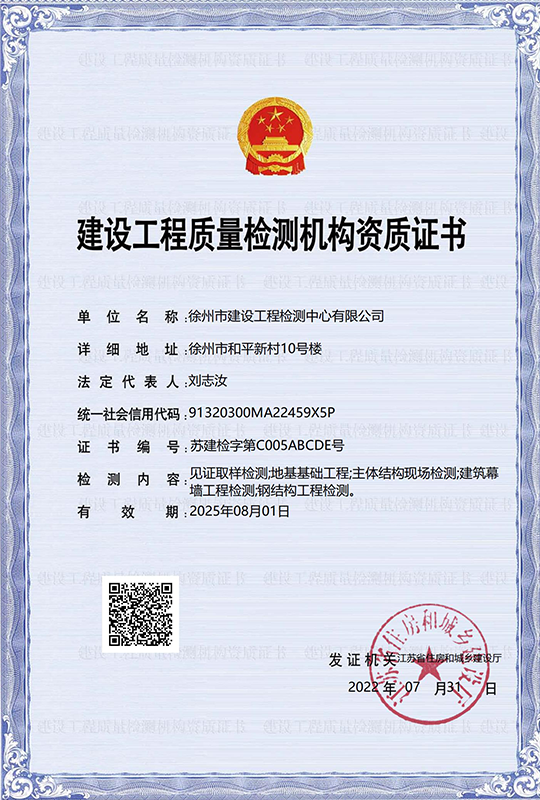 徐州市建設工程檢測中心有限公司(以下簡稱徐建檢測公司)是徐州市產(chǎn)城發(fā)展集團有限公司(以下簡稱產(chǎn)城集團)的全資子公司。徐建檢測公司前身為徐州市建設工程檢測中心,2018年事轉(zhuǎn)企改制,2020年4月,完成轉(zhuǎn)企改制資產(chǎn)劃轉(zhuǎn)工作。 徐建檢測公司是集檢測、檢驗、鑒定、咨詢等技術服務為一體、具有獨立法人資質(zhì)的綜合性第三方服務機構(gòu)。公司主要從事建設工程領域相關工程質(zhì)量檢測及技術咨詢服務,業(yè)務覆蓋地基基礎、建筑材料、建筑結(jié)構(gòu)、鋼結(jié)構(gòu)工程、市政工程、綠色建筑節(jié)能工程、建筑安全與施工設備、建筑防水、建筑水電、裝飾裝修、建筑物防雷、室內(nèi)環(huán)境、房屋安全鑒定、城市軌道交通工程等專業(yè)領域。......